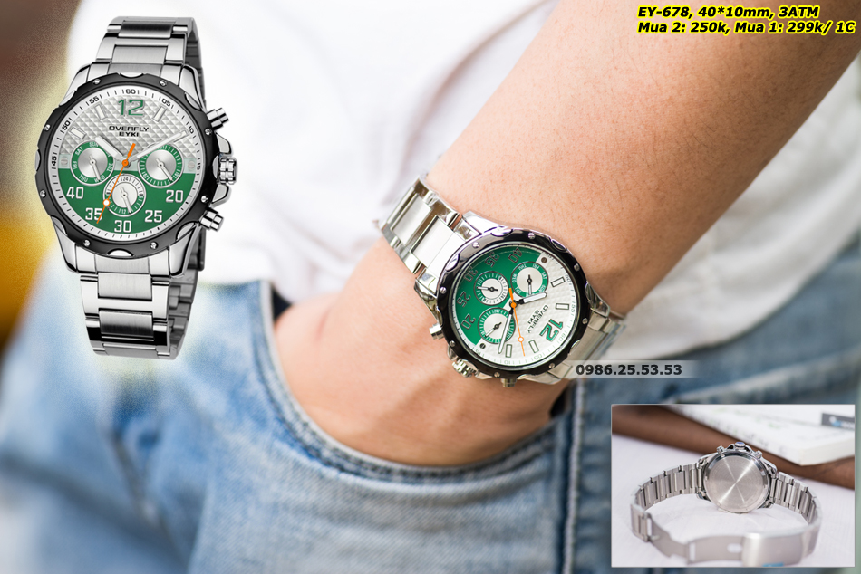 Đồng hồ thể thao 6 kim nam, dây trắng mặt Xanh độc đáo, đeo đi chơi, thể thao, học tập...